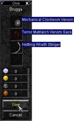 [Thu May 15 20:42:16 2003] LOADING, PLEASE WAIT... [Thu May 15 20:42:39 2003] You have entered Plane of Justice. [Thu May 15 20:34:23 2003] Brugga judges you amiably -- You could probably win this fight. [Thu May 15 20:44:47 2003] You say in Orcish, 'what rare diseases' Give Brugga the 'Purified Bubonian Bile' Go collect and Give Brugga the following...