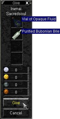 [Thu May 15 20:48:07 2003] LOADING, PLEASE WAIT... [Thu May 15 20:48:28 2003] You have entered Plane of Tranquility. Give Iramai Scredsoul, 'Vile of Opaque Fluid' and 'Purified Bubonian Bile'