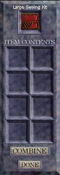 ITEM INFO: Weight Trivial Silk Thred Combine: 2 Spiderling Silk. 0.1 15 Silk Swatch Combine: 2 Spider Silk. 0.1 15 Silk Bandage Combibe: 2 Silk Thred. 0.2 21 Silk Cord Combibe: 3 Silk Thred. 0.1 26 Leather padding Combine: 1 Silk Thred + 1 LOW Quality Pelt (Wolf, Cat, Bear) 0.1 31 Quivers Combine: 1 Quiver Pattern + 1 High Quality Cat Pelt.